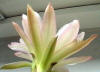 cremeweiß mit rose Schlund, äußere Petalen variieren von hellgelb-bräunlich bis zu hellem pink |