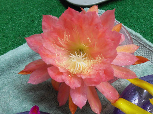 hellrosa Petalen mit gezackten Rändern, die äusseren Petalen sind goldrosa |