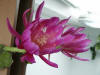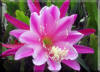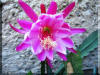 außen rot mit orangem Streifen, Mitte heller, hell-karmin Petalen mit dunklem Mittelstreifen |