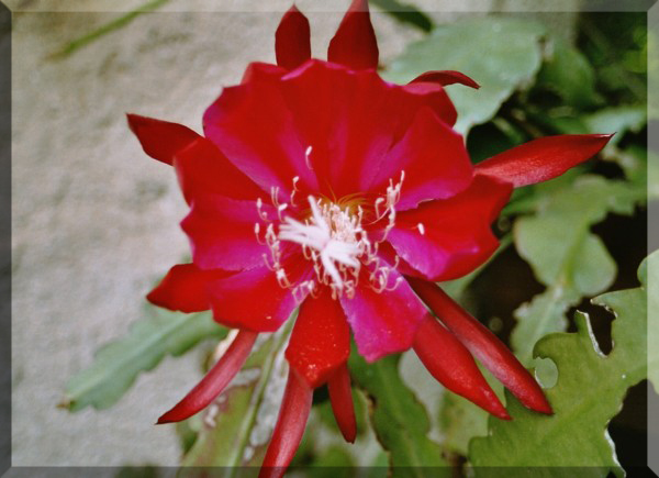 purpur farbene innere und äussere Petalen mit orchideenrosa gefärbtem Mittelstreifen |