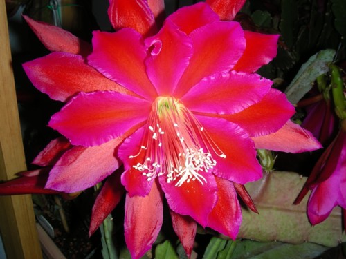 tiefes dunkelrot mit einem Hauch fuchsien-farben im Schlund, äußere Petalen rot |