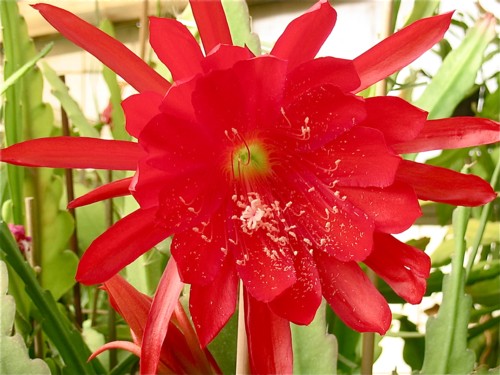 hell bis dunkel rot mit purpur , spitz zulaufende Spitzen |