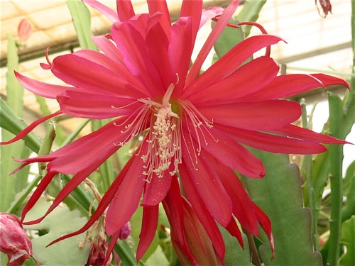 rot mit purpur Rändern, die Spitzen der äusseren Petalen sind gedreht. |
