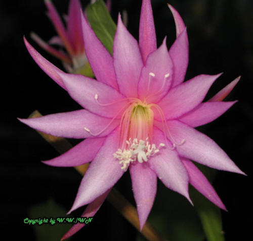 innere Petalen sehr hell rot violett mit dunkel purpur roten Rändern. Äussere Petalen hell purpur rot. |