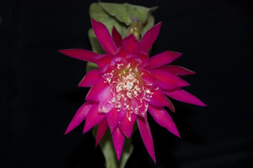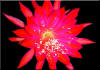 Tief rot mit fuchsia Rändern. Radförmig. |