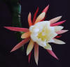 innere Petalen cremegelb. Äussere Petalen cremegelb, rosa und rotviolett. |