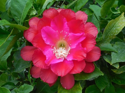 einfarbig johannisbeerrot mit orangem Mittelstreifen. |