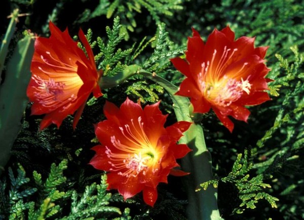 innere Petalen feuerwehrrot mit weissem Schlund. Rote äussere Petalen |