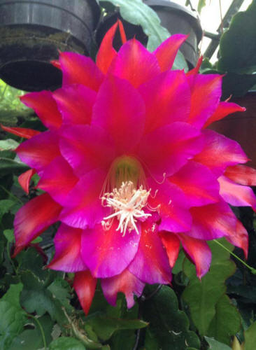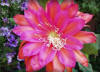 leuchtend rot, magenta Ränder, breite spitze zulaufende Petalen |