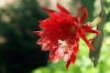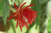 leuchtend rot mit gefederten, magenta Rändern. Lange, schmale äussere Petalen in komplett wassermelonenrot. |
