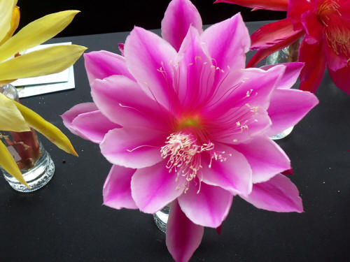 kirschrot mit dunklerem Mittelstreifen, äußere Petalen dunkel kirschrot mit helleren Rändern |