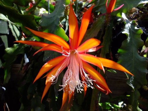 Innere Petalen orange-rot mit hell-violett roten Rändern. Äussere Petalen orange-rot |