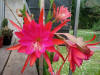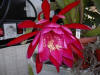 Dunkel orange und purpur mit purpur Schlund. Äussere Petalen tief orange. |