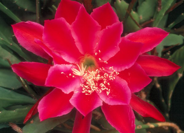 innere Petalen kirschfarben mit rotem Mittelstreifen und lavendel Rändern. Äussere Petalen kirschfarben mit rotem Mittelstreifen. |