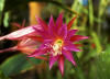hell violett mit helleren Rändern und orangem Mittelstreifen. Äussere Petalen orangerot. |