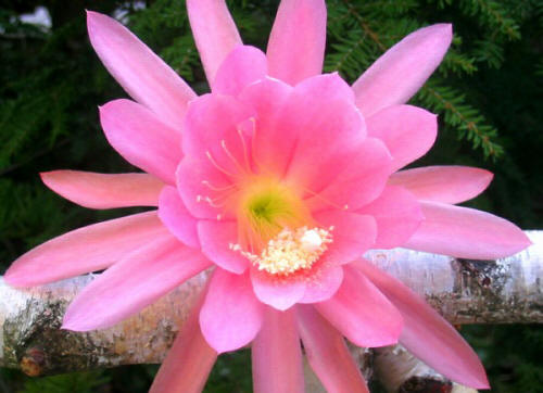 rosa mit dunkler rosa Rändern, äussere Petalen rosa mit grünen Sprenkeln |