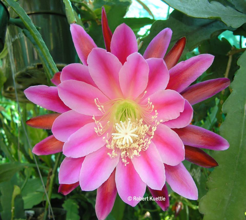 breite purpur Petalen mit weissen Rändern und rotem Mittelstreifen |