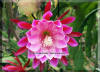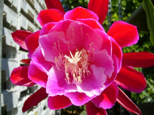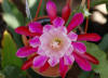 violett mit scharlachrotem Mittelstreifen und fuchsienfarbenen Rändern, außen kardinalrot |