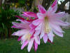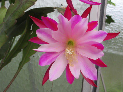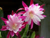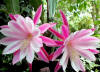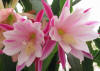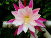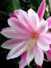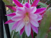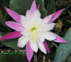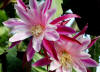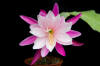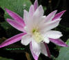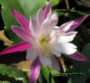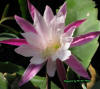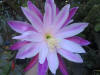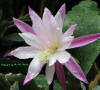 hellviolett mit breitem dunkel purpur Mittelstreifen, beinahe weisse Ränder, äussere Petalen rot |