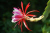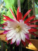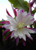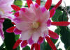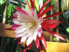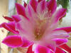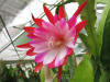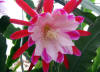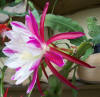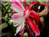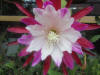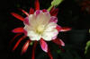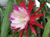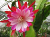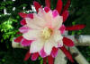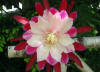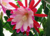 weiß, himbeerfarbene Aderung und Mittel-streifen, außen rot |