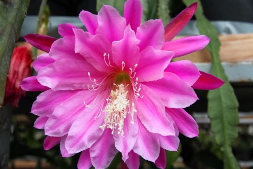 rose mit purpur Rändern, breiter altrosa Mittelstreifen. Äußere Petalen dunkelrot mit purpur |