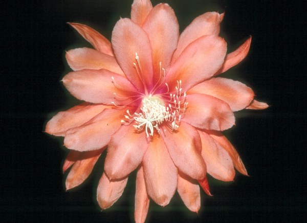kupfer-orange mit lavendelfarbenem Schlund, äußere Petalen orange |