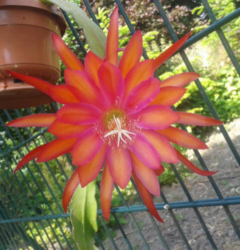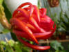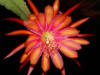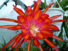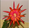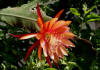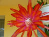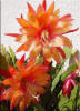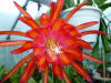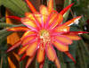 ringelblumengelb orange mit roten Rändern, außen dunkel orange, breite, gekräuselte Petalen |