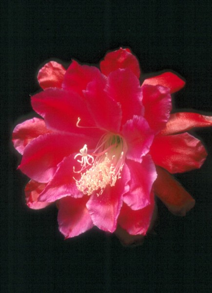 garnelen-rosa und mandarinen-farben überhaucht, äußere Petalen dunkel mandarinenfarben |