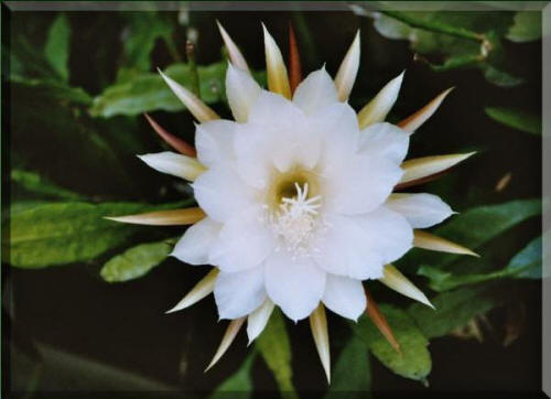 weiss, äußere Petalen lang, schmal, gelbbraun |
