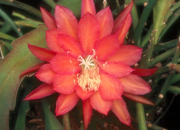 pink, etwas dunkler im Zentrum, roter Schlund, äußere Petalen gelbbraun mit pinkfarbenem Mittelstreifen |