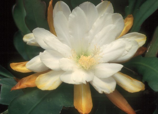 fahles bis mittleres gelb mit grünem Schlund, äußere Petalen mittleres gelb bis bronzefarben |