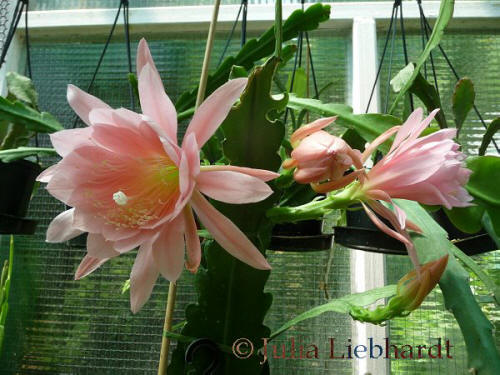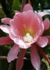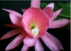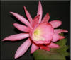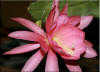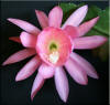 karminrose mit creme Mittelstreifen, violette Ränder im Schlund, äussere Petalen rot |