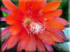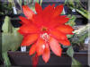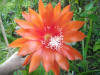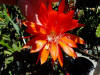 innere Petalen leuchtend orange, breit, leicht gekräuselt. Äussere Petalen dunkel bronze, aufgerichtet. |