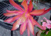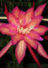 innere Petalen dunkel rose mit pink-orangefarbenem Mittelstreifen, äußere Petalen rose |