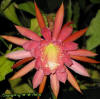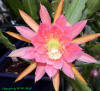hell rose-pink mit schmalen aprikosen-farbenen äußeren Petalen |