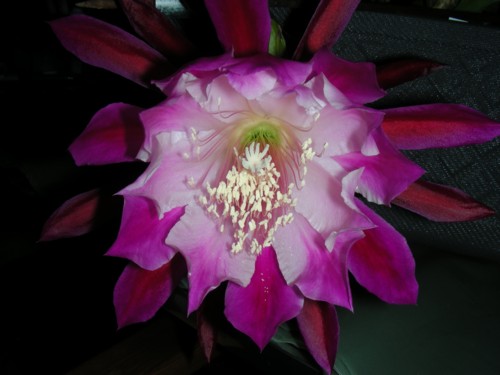 pupur mit weissem Mittelstreifen und weissem Schlund. |