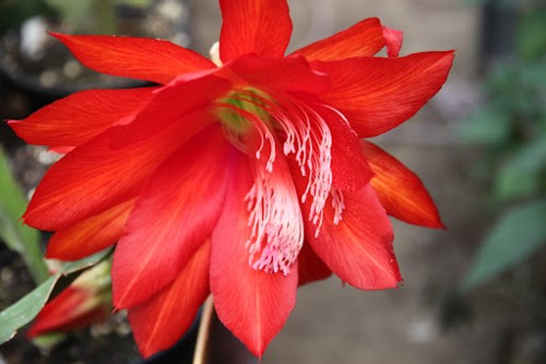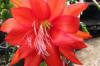 Orange mit hell fuchsia Mittelstreifen. Äussere Petalen bronze orange. |