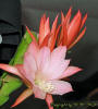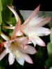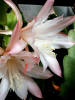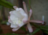 Cremeweiss mit rosa Schimmer. Äussere Petalen rosa |