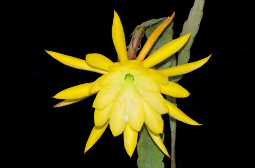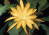 gelb mit zart gelbem Mittelstreifen, äußere Petalen zart gelb, gesprenkelt |