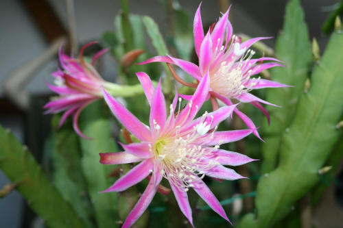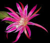 innere Petalen purpur mit cremefarbenen Rändern. Äussere Petalen rot und purpur. |