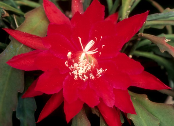1.Reihe orange-rot mit kräuseligen Rändern, 2.Reihe orange, äußere Petalen dunkel rot |
