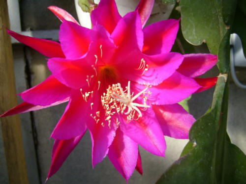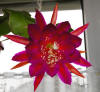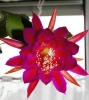 lachsorange mit violettem Schlund, im Zentrum nach grün wechselnd. Oranger Griffel |