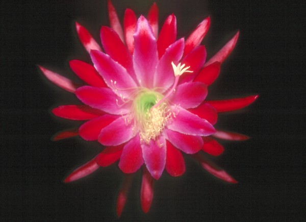 fuchsienfarben mit rotem Mittelstreifen, die anderen Reihen sind rot |