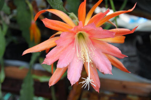 orange mit pinkfarbenem Mittelstreifen, äußere Petalen orange |