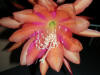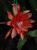 innere Petalen kirschrot mit orangen Spitzen und Mittelstreifen. Äussere Petalen orange mit roten Spitzen und Rändern |