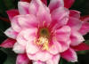 ungewöhnliche Blüte in Knospenform, hell lavendel schattiert, 2.Reihe dunkler, einige innere Petalen gekräuselt, äußere Petalen dunkel rot |