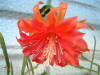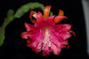 Innere Petalen violettrot. Äussere Petalen aprikotfarben mit violettrotem Mittelstreifen. |