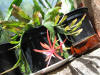 hellrot, purpurrote Staubgefässe und Schlund, schmale Petalen |