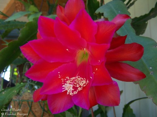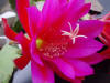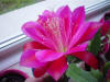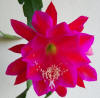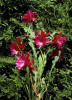 hellviolett mit orangem Mittelstreifen. Äussere Petalen rot. |