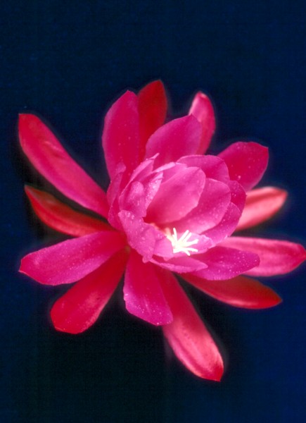purpur mit hellerem Mittelstreifen, äußere Petalen dunkel himbeer-purpur |
